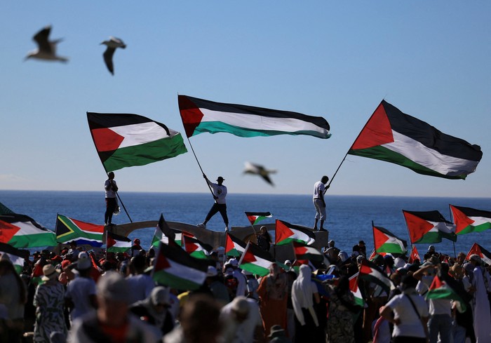 Protes Donald Trump, Warga Cape Town Kibarkan Bendera Palestina. Foto: REUTERS/Esa Alexander