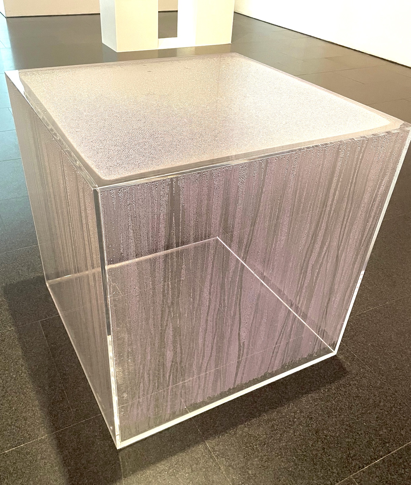 Hans Haacke, “Condensation Cube” , 1963-67, metacrilato, acqua distillata e aria, © Hans Haacke