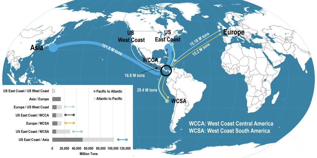 I principali traffici commerciali che passano per il canale di Panama nel 2024 secondo Il Panama Canal Authority
